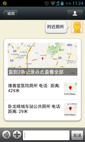 开启此功能,发送位置就回复你自定义的LBS数据根据你设置的标签,你还可以输入“附近+标签(关键词)”看查询结果,还可以输入"附近300米+标签(关键词)"看查询结果。